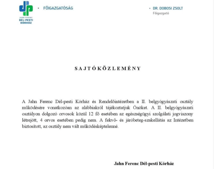 ismét elérhetővé a II. Belgyógyászati Osztály működése is, legalábbis papíron. Hiszen a gyomor-bélrendszeri vérző betegeket ma is más kórházakba szállítják. Erről pedig egy nyilatkozat is született, amely komoly és igen etikátlan részleteket is tartalmaz.