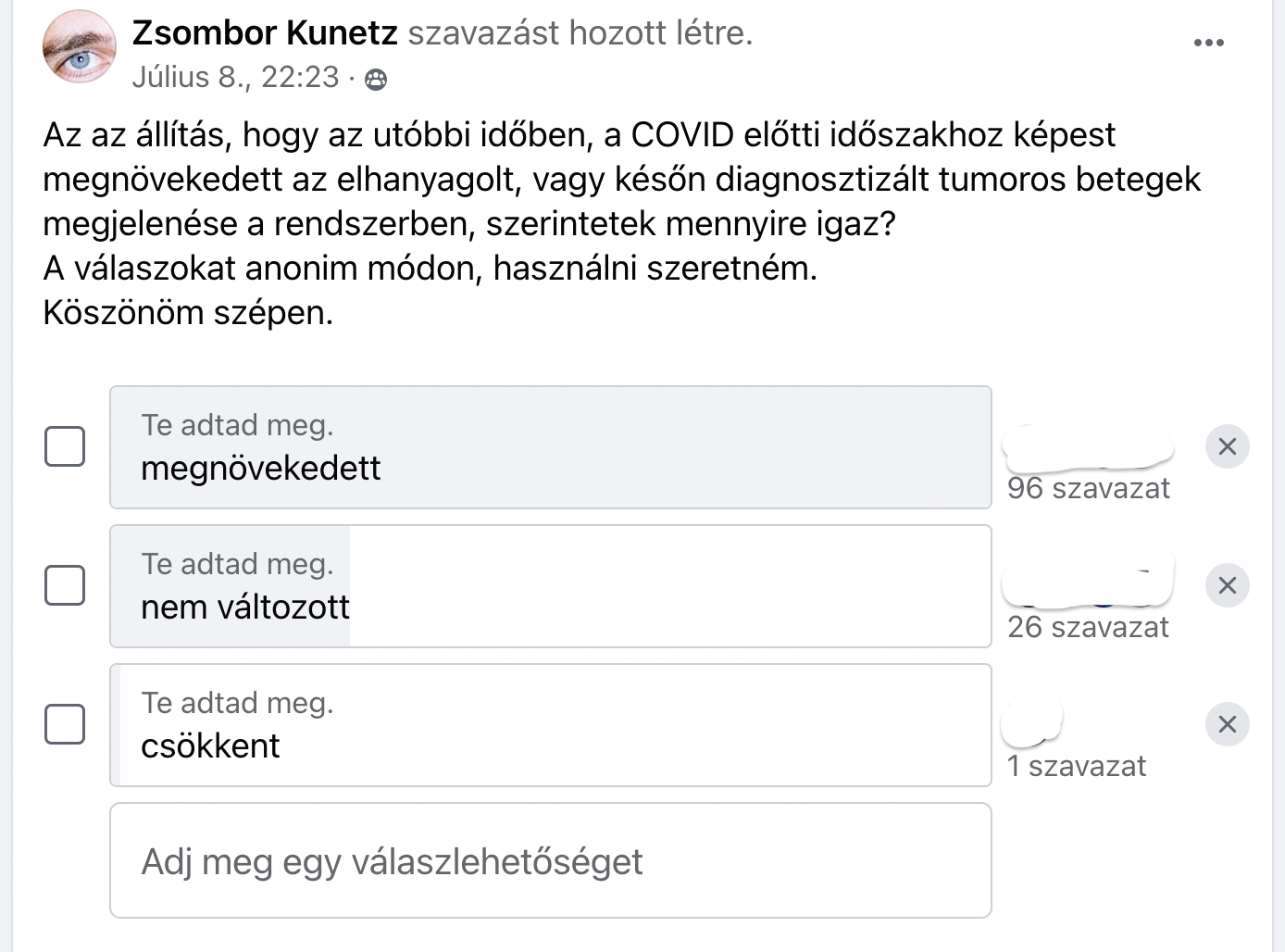 “Az az állítás, hogy az utóbbi időben, a COVID előtti időszakhoz képest megnövekedett az elhanyagolt, vagy későn diagnosztizált tumoros betegek megjelenése a rendszerben, szerintetek mennyire igaz? “